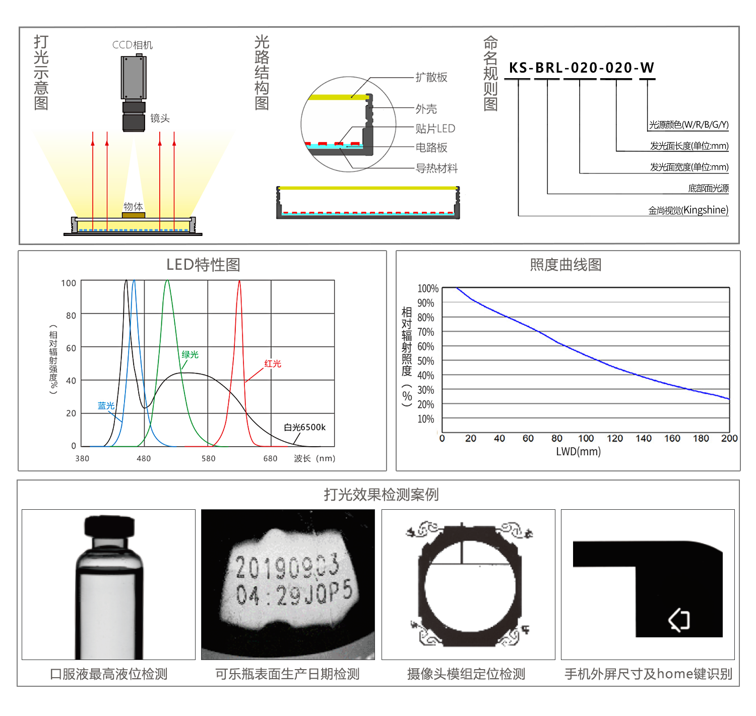 ??FB系列底部面光源,通過LED經(jīng)結(jié)構(gòu)優(yōu)化后均勻布在光源底部,經(jīng)漫反射后在表面形成一片均勻的照射光。面光源在增加光線控制膜后,光線的均勻性得到改善,適合需要均勻照明的應(yīng)用場景。光線控制膜能夠?qū)⒙涞墓饩€變成相對平行的光線,從而提高面光源的均勻性。它適用于檢測表面缺陷、文字識(shí)別、標(biāo)志檢測等需要清晰表面細(xì)節(jié)的應(yīng)用。